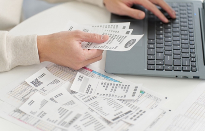 経理業務の負担を軽減するため、領収書や請求書に基づき、専門的な知識をもって正確に記帳を代行いたします。 また、お客様ご自身で会計ソフトを利用し経理処理を行う「自計化」を希望される場合は
